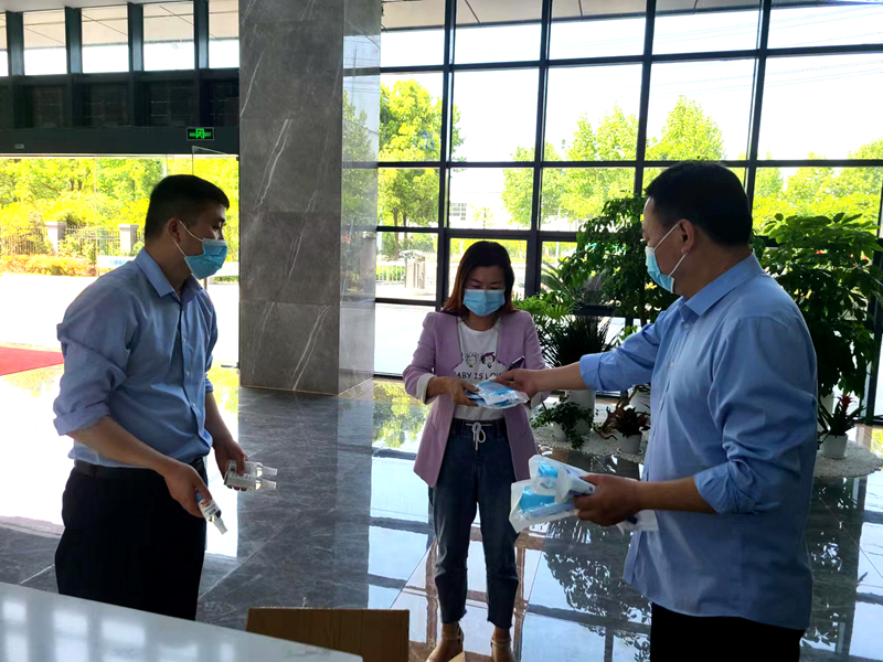 老章(右一)向同時發(fā)放防疫物資