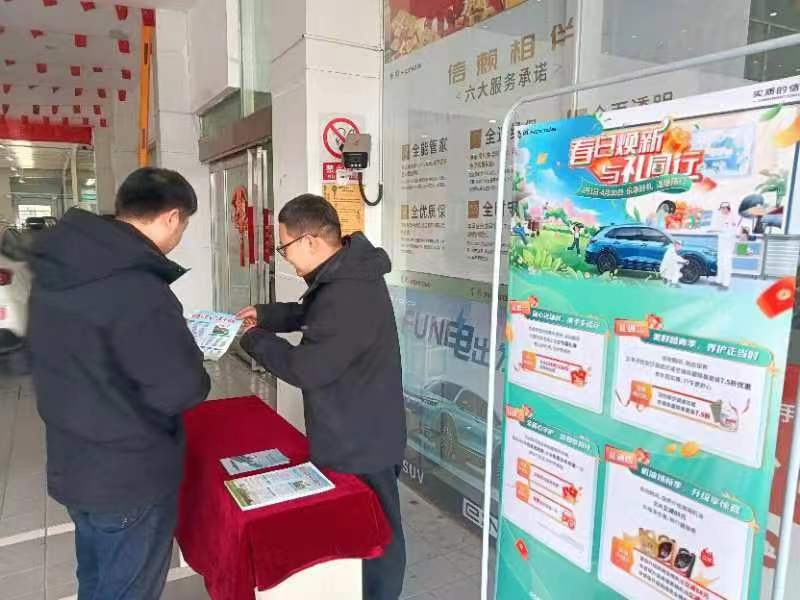 在售后服務大廳的客戶休息區(qū),公司設(shè)置了“車輛保養(yǎng)知識宣傳臺”,安排專業(yè)技師向客戶介紹車輛保養(yǎng)小知識和日常車輛使用常識。同時,為保障員工和廣大客戶生命財產(chǎn)安全,阜陽迎駕店邀請市經(jīng)開區(qū)交警隊開展安全駕駛教育,發(fā)放“0酒駕”宣傳冊,教育引導員工和客戶樹牢“開車不喝酒,喝酒不開車”的意識,并向所有進店的客戶、快遞和外賣小哥贈送口罩。