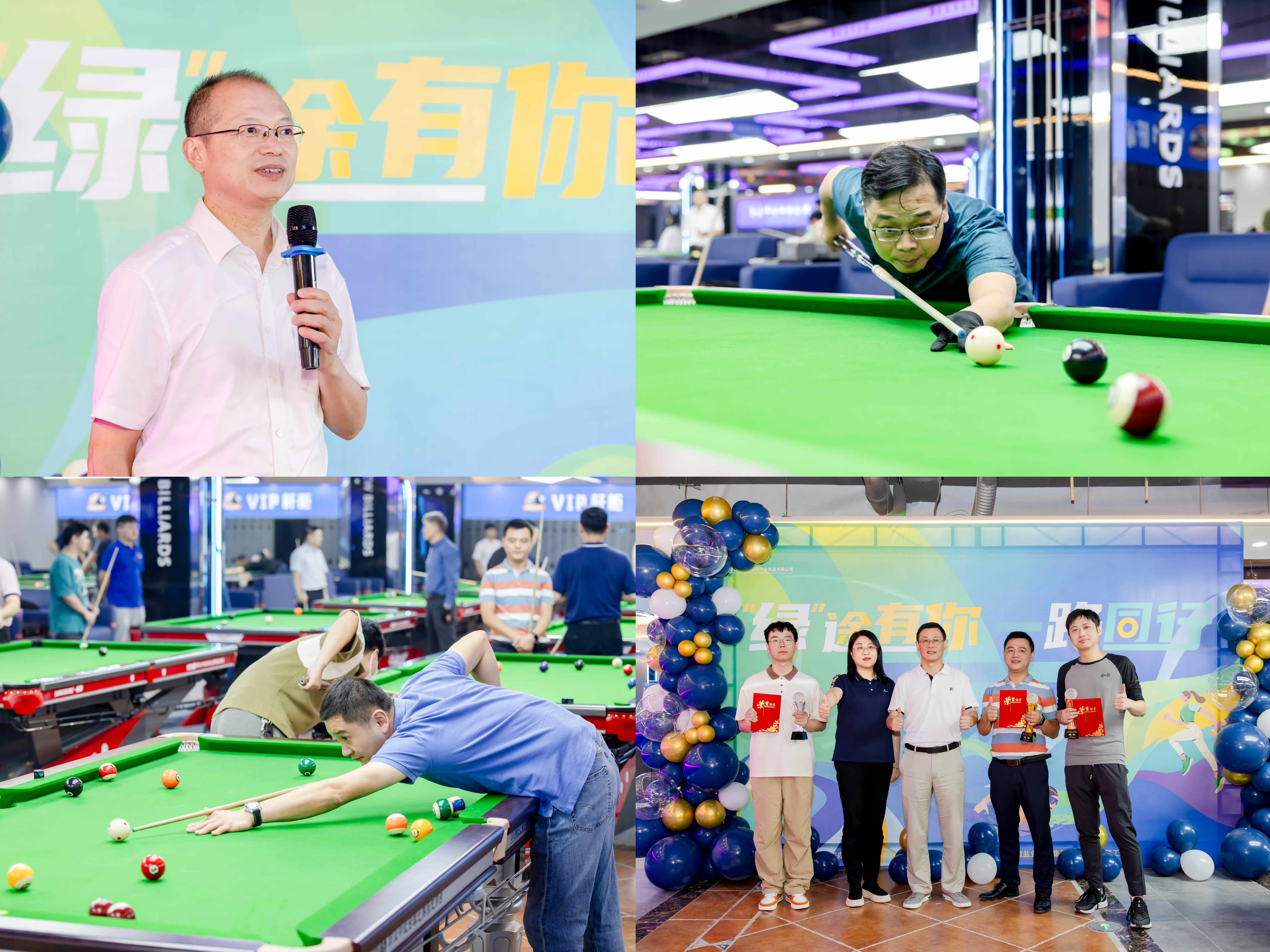 在熱烈慶祝中華人民共和國成立75周年、安徽省生態(tài)環(huán)境產(chǎn)業(yè)集團(tuán)掛牌組建一周年之際,為營造歡慶氛圍,凝聚干事創(chuàng)業(yè)正能量,9月29日下午,省生態(tài)環(huán)境集團(tuán)“‘綠’途有你,一路同行”系列主題文體活動正式拉開帷幕,第二屆“徽鹽地產(chǎn)杯”臺球比賽在合肥濱湖成功舉辦,集團(tuán)公司黨委副書記張小忠出席開幕式并致辭,集團(tuán)公司黨委委員、紀(jì)委書記羅守斌出席活動并為比賽開球,來自集團(tuán)公司本部及所屬各單位50余名臺球愛好者踴躍參賽。