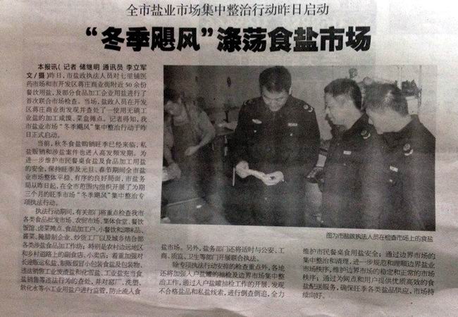 執(zhí)法行動期間,有關(guān)部門將重點檢查我市各類食品批發(fā)市場、農(nóng)貿(mào)市場、集體食堂、餐飲飯館、鹵菜攤點、食品加工戶、小餐飲和調(diào)味品、醬菜、腌臘制企業(yè)、炒貨工廠以及城鄉(xiāng)結(jié)合部各類涉鹽食品加工作坊;特別是農(nóng)村邊遠(yuǎn)地區(qū)和鄉(xiāng)村道路上的副食店、小賣店;著重加強對長途販運私鹽、制販假冒小包裝食鹽及包裝物、違法銷售工業(yè)廢渣鹽和化雪鹽、工業(yè)鹽充當(dāng)食鹽銷售等違法行為的查處,并對窯廠、洗塑、軟化水等小工業(yè)用鹽戶進行監(jiān)管,防止流入食鹽市場。另外,鹽務(wù)部門還將適時與公安、工商、質(zhì)監(jiān)、衛(wèi)生等部門開展聯(lián)合執(zhí)法。