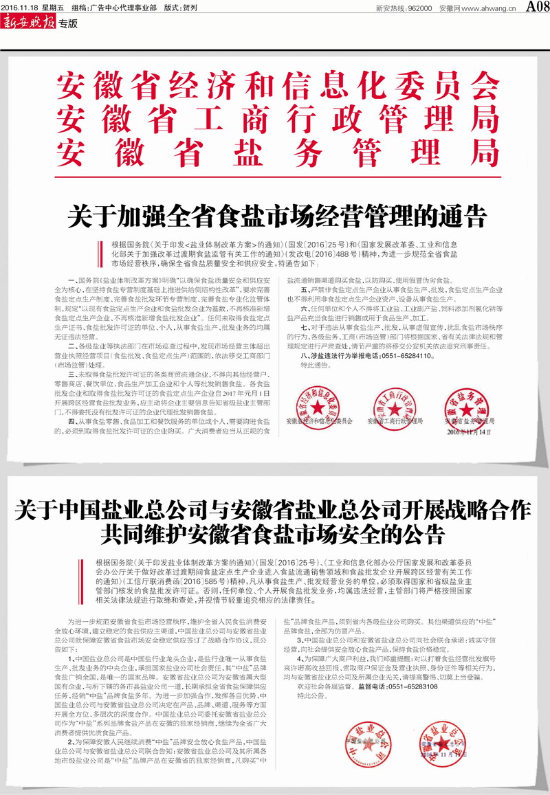 安徽省鹽務(wù)局涉鹽違法舉報(bào)電話是0551-65284110,歡迎廣大群眾監(jiān)督舉報(bào)。