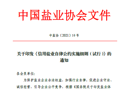 要了解《<信用鹽業(yè)自律公約>實施細則》(試行)的相關(guān)內(nèi)容,首先要從《信用鹽業(yè)自律公約》(試行)說起。