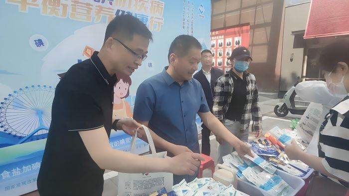 阜陽市經(jīng)信局、市場監(jiān)督管理局、市疾控中心、阜陽市鹽業(yè)公司等單位領導在展臺開展宣傳活動