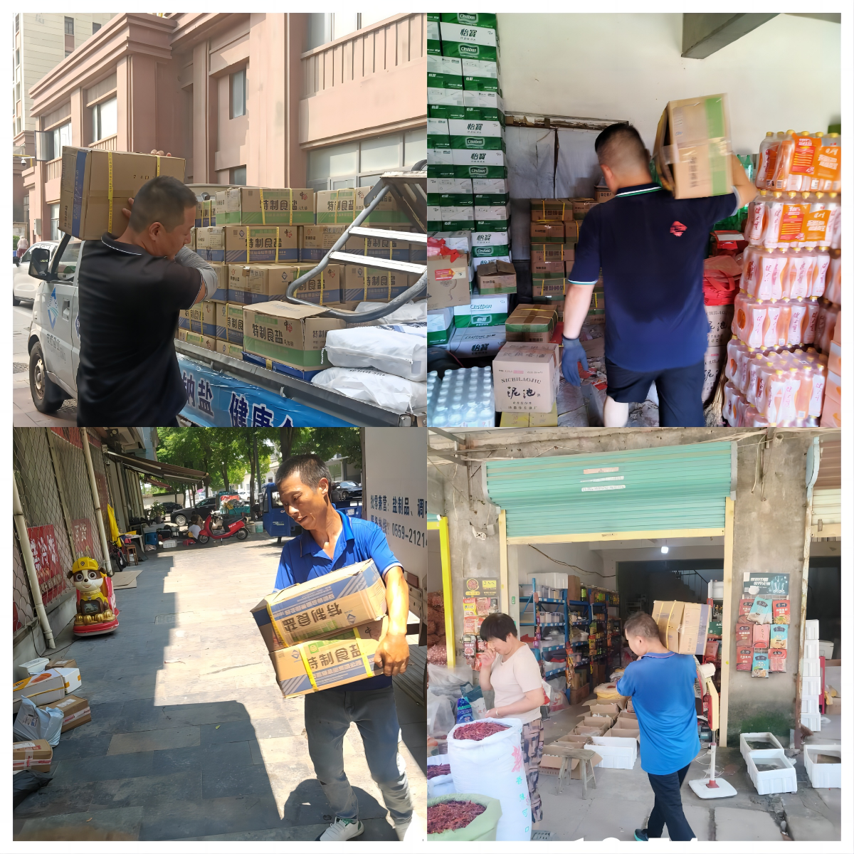 伴隨著清晨的第一縷陽光,各市縣鹽業(yè)公司已經(jīng)是一片繁忙景象,車輛檢查、鹽品出入庫、貨物裝卸等工作都在有條不紊地進(jìn)行。鹽品裝車完成后,安徽鹽業(yè)的配送員工們熟練地駕駛著貨車,沿著既定路線出發(fā),開始了一天的配送工作。作為事關(guān)國計民生的產(chǎn)品,我們深知食鹽對于每個家庭的重要性,這不僅僅是做簡單的配送工作,更是肩負(fù)保障民生的責(zé)任。每到達(dá)一個終端網(wǎng)點(diǎn),配送員工們都要將一箱箱食鹽從車上搬運(yùn)到店內(nèi)擺放整齊,臉上的汗水不斷滴落,身上的衣服濕了干、干了濕,鹽業(yè)人的辛勤付出不僅保證了市場的穩(wěn)定供應(yīng),也為社會的和諧發(fā)展貢獻(xiàn)了一份力量。
