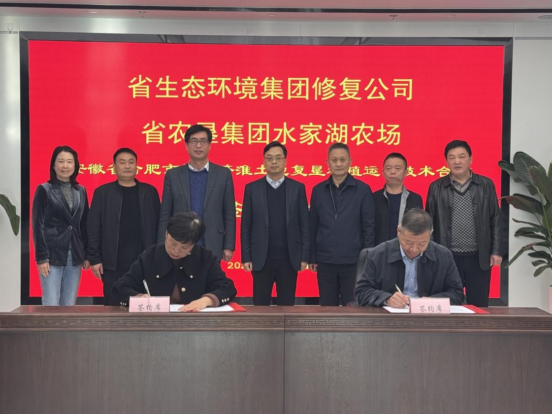 2025年3月21日下午,省生態(tài)環(huán)境集團(tuán)生態(tài)修復(fù)公司與省農(nóng)墾集團(tuán)水家湖農(nóng)場舉行引江濟(jì)淮工程(安徽段)合肥市高新區(qū)2號棄渣場臨時用地土地復(fù)墾種植運(yùn)營技術(shù)合作簽約儀式。